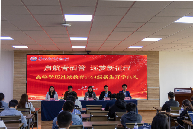 本网讯(继续教育学院 王艳)启航青酒管,逐梦新征程。4月20日,学校高等学历继续教育2024级新生开学典礼暨开学第一课在行政楼四楼会议室举行,363名新生通过主会场加线上云直播的方式参加。学校副校长、工会主席姜玲玲参加活动。