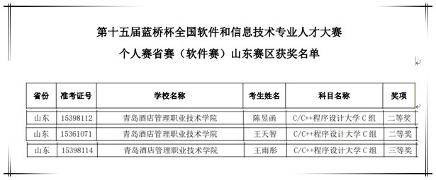 本网讯(信息工程技术学院)近日,第十五届蓝桥杯全国软件和信息技术专业人才大赛山东赛区获奖名单揭晓,sunbet2022级物联网应用技术专业王天智、2023级大数据技术专业陈昱函获得山东省赛区二等奖,2023级大数据技术专业王雨彤荣获赛区三等奖。