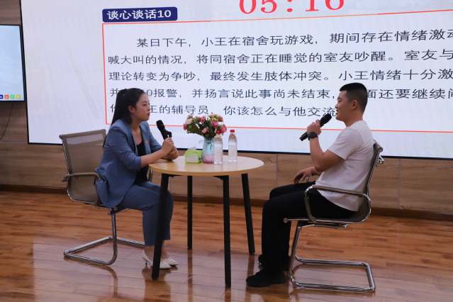 本次大赛对标山东高校辅导员素质能力大赛赛制,自2024年4月开始,分初赛、决赛两个阶段进行,全体辅导员积极备赛参赛。初赛阶段,基础知识测试、理论宣讲两个环节重点考查辅导员的知识储备、理论功底和宣讲能力,得分排名前10的选手晋级决赛。决赛阶段,案例研讨、谈心谈话两个环节,内容涉及思想引领、学风建设、心理健康教育、日常事务管理等辅导员常规工作,重点考查辅导员分析问题、研判问题、解决问题的能力。赛场上,选手们以扎实的基本功冷静答题、沉着应对,展示出了良好的理论水平、丰富的实战经验和积极的精神风貌。