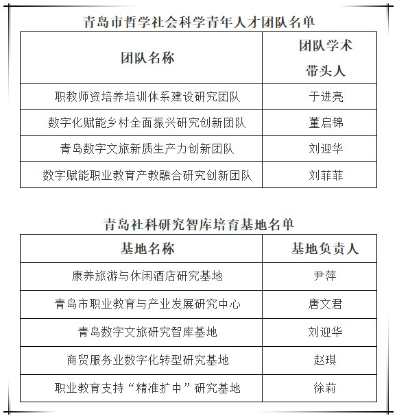 青岛市哲学社会科学青年人才团队旨在助力培育壮大全市社会科学人才队伍建设,紧紧围绕构建中国特色哲学社会科学学科体系、学术体系、话语体系,把握正确的政治方向、学术导向,发挥团队优势,深入开展联合攻关,努力推出有深度、有分量、有影响的创新成果。青岛社科研究智库培育基地旨在搭建实务部门与社科智库专家间畅通稳定的交流渠道,探索政产学研合作新模式,促进专家智库建设与我市发展需要有机结合。
