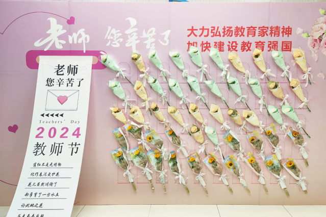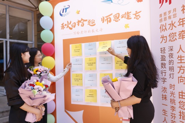 一个镜头、一个场景、一句祝福……教师节期间,校园内处处洋溢着尊师重教的良好风尚。图书馆楼前悬挂的横幅、电子显示屏上滚动播放的祝福语……让弘扬尊师的风尚入心见行;教室里、微信上,一句句“老师,节日快乐!”让老师们感受到了浓浓的关怀与尊重。在会计学院,一面装饰着玫瑰与向日葵的鲜花主题墙成为了焦点,玫瑰象征着老师们的热情与智慧,向日葵则寓意着老师们始终向着光明与希望前行,主题墙寄托了学生们对老师的深深敬意。在信息工程技术学院,“秋日拾趣 师恩难忘——写给老师的散文诗”传递着感念师恩的美好情怀。艺术学院学子诗朗诵《烛光里的颂歌》,用最动人的语言和最饱满的情感,献上一份专属“告白”,诉说着对老师的感恩之情。学生们通过多元形式为亲爱的老师送上深深的敬意和节日的祝福,并将感恩的心化作行动的力量,在奋斗中追逐青春梦想。(大众网记者 刘佳琦 报道)