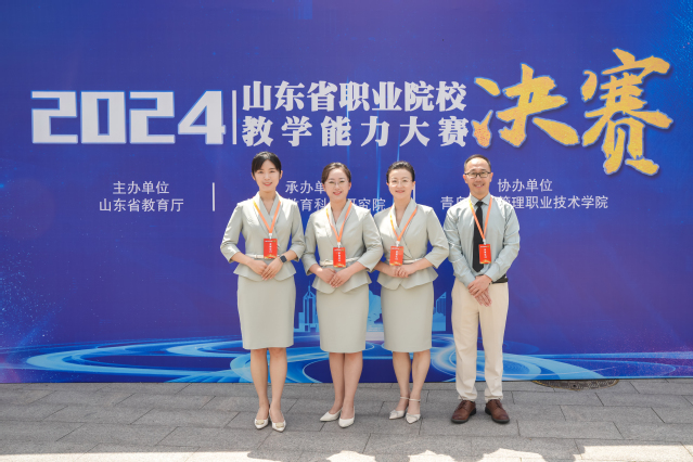 本届大赛由山东省教育厅主办,山东省教育科学研究院承办,分为中职组、高职组两个类别。大赛历经市(校)赛选拔、资格审核、网络初评、现场决赛等多个环节,汇聚了众多优秀教师,展示了教学创新成果。比赛中,酒店工程学院薛陆、丛怡、吴洋、刘太彪的作品《光伏电站直流侧设备维护与检修》,会计学院崔婧、黄媛、李楠、陈子涵的作品《出海酒店餐饮成本核算与管理》,信息工程技术学院梁磊、刘晓霞、温雪、孙晓红的作品《数字助老APP设计与开发》,基础教学部董全悦、张静静、王斐、杨娟的作品《Promoting Activities推介活动》集中展示了学校教育教学成果;参赛教师凭借扎实的专业功底和创新的教学设计在激烈的竞争中脱颖而出。