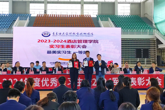 北京瑰丽酒店、济南怡豪大饭店、山东舜和酒店集团、青岛海景花园大酒店、青岛八大关宾馆、青岛山孚大酒店等企业为优秀实习生提供了特等奖学金。酒店管理学院院长冷雪艳宣读最美实习生获奖名单,酒店管理学院副院长王光健宣读优秀实习生、优秀实习团队等获奖名单。优秀实习生代表、香港嘉里酒店实习生白玉建发言,对学校、酒店的培养表达感谢。