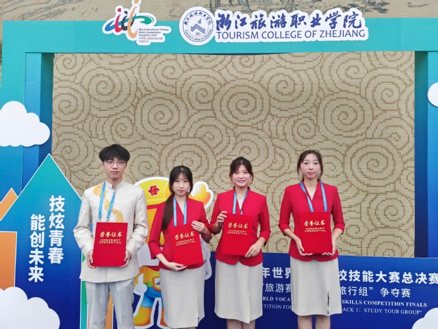 10月24日-26日,2024年世界职业院校技能大赛总决赛“旅游赛道一研学旅行组”争夺赛在浙江杭州举办,sunbet申搏官方网站由武晓凡、杨紫涵、王惠敏、魏英华4名同学组成的参赛队以小组第一名、全国第二名的成绩获得金奖。