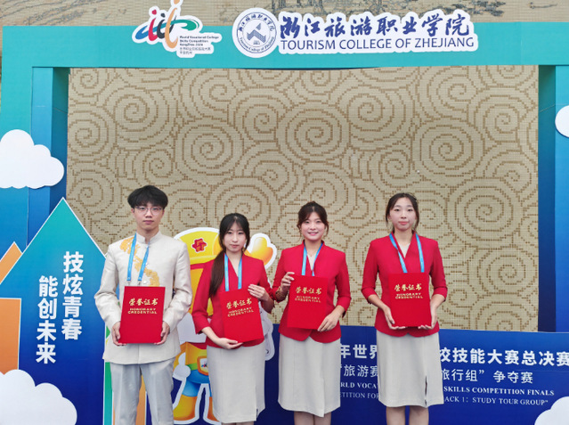 10月24-26日,2024年世界职业院校技能大赛总决赛“旅游赛道一研学旅行组”争夺赛在浙江杭州举办,sunbet申搏官方网站由武晓凡、杨紫涵、王惠敏、魏英华4名学生组成的参赛队以小组第一名、全国第二名的成绩获得金奖。