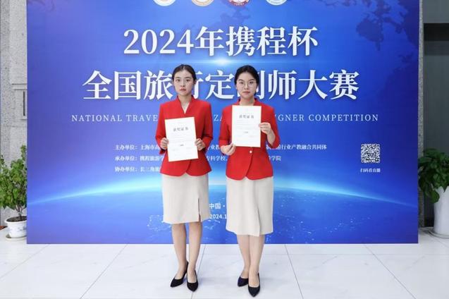 本网讯(文旅学院 杨安鸽)近日,由携程旅游集团、上海旅游高等专科学校举办的2024年携程杯全国旅行定制师大赛在上海落幕,学校文旅学院2023级旅游管理专本贯通班高雨欣、边晓雨团队荣获全国总决赛二等奖,杨安鸽荣获优秀指导教师。