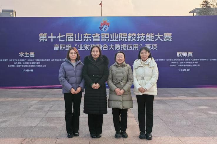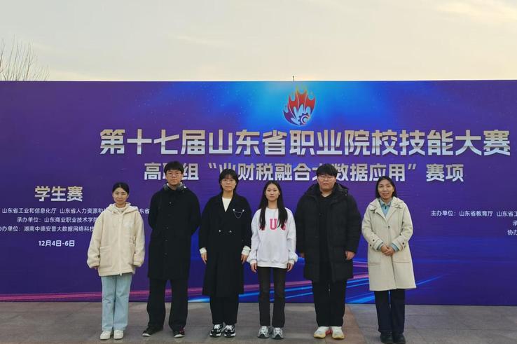 本网讯(会计学院 付筱惠)12月4日-8日,第十七届山东省职业院校技能大赛高职组“业财税融合大数据应用”赛项举行,sunbet会计学院刘凯、付筱惠老师指导,姚雨孜、刘舒蓉、赵晨阳、王润鸿四名同学组成的学生代表队荣获二等奖;高琳、李真、刘凯、田原四名教师组成的教师代表队荣获三等奖。