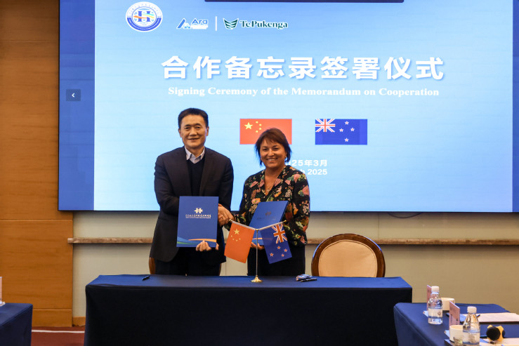 姜玉鹏代表学校与国立新西兰Ara坎特伯雷理工学院签署合作备忘录。