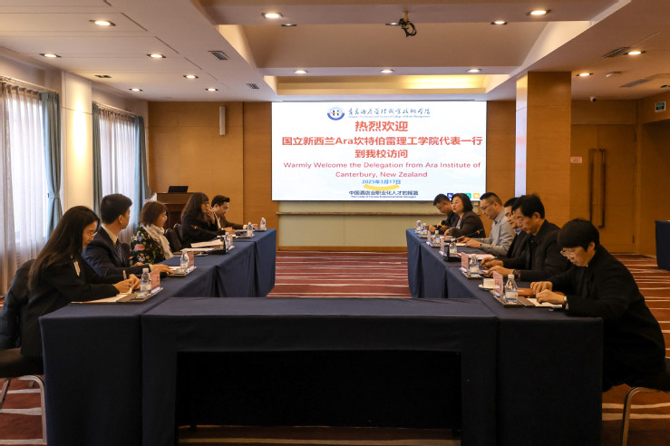 国立新西兰Ara坎特伯雷理工学院国际部总监狄安娜·安德森、国际市场部及中国代表处相关人员,sunbet教务处、酒店管理学院、国际交流与合作处负责人参加座谈。