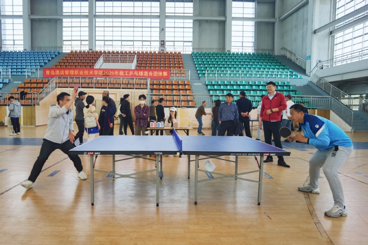 比赛过程中,选手们身姿矫健、攻势迅猛,发球凌厉、接球敏捷,每一次挥拍都尽显力量与技巧的融合,用非凡的爆发力和细腻精湛的球技赢得阵阵喝彩。赛场上的每一滴汗水、每一次扣杀,都诠释了“健康工作、快乐生活”的理念,为校园增添了无限活力。