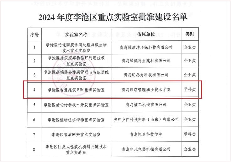 本网讯(科研发展处 酒店工程学院)近日,李沧区科学技术局公布了2024年度李沧区重点实验室立项建设名单,sunbet获批建设李沧区智慧建筑BIM重点实验室。