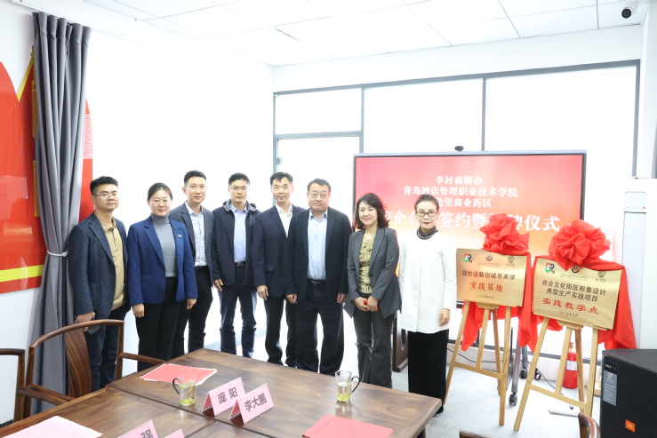 本网讯(艺术学院 校企合作处)5月9日,学校与李村商圈青沧里·商业文化园区合作签约仪式在园区党员活动中心举行,标志着学校与李沧区政府及园区企业共建的“政校企联创城市美学实践基地”与“商业文化街区形象设计典型生产实践项目实践教学点”正式落地。