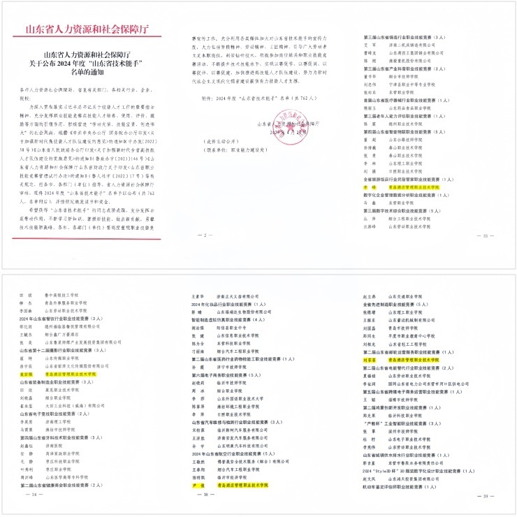 本网讯(酒店管理学院 艺术学院)近日,山东省人力资源和社会保障厅印发了《关于公布2024年度“山东省技术能手”名单的通知》,sunbet李峰、袁宏强、尹俊、刘菲菲四位教师荣获“山东省技术能手”称号,充分展现了学校师资队伍的技术实力和产教融合的显著成效。