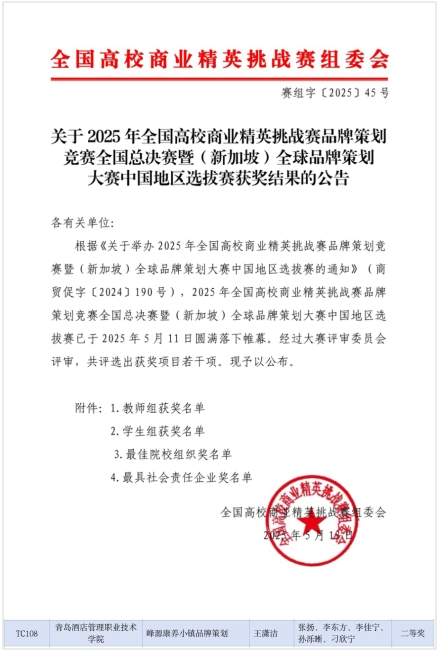 本网讯(艺术学院 王潇洁)5月11日,2025年全国高校商业精英挑战赛品牌策划竞赛全国总决赛暨(新加坡)全球品牌策划大赛中国地区选拔赛举行,sunbet艺术学院学生张扬、李东方、刁欣宁、李佳宁、孙泺晰组成的参赛队喜获全国二等奖。