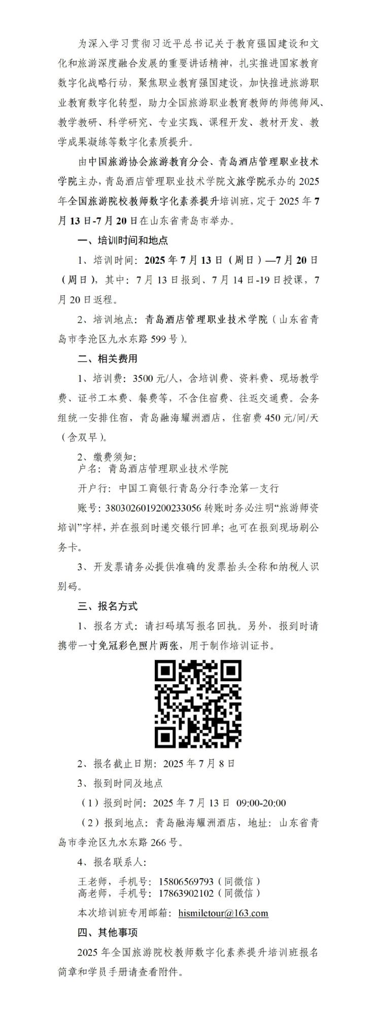 附件1:2025年全国旅游院校教师数字化素养提升培训班报名简章.pdf