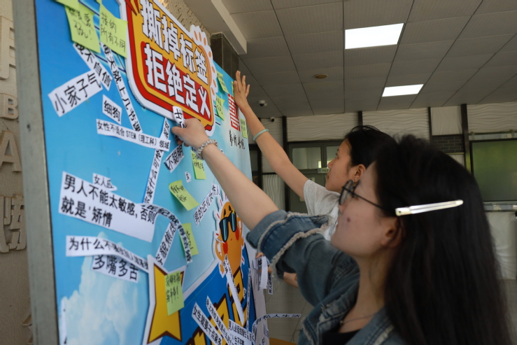 艺术学院前期收集了“学艺术不务正业”“内向等于不合群”等200余条标签。活动现场以“撕下标签,对刻板印象说‘NO’”为主题,同学们围绕各类议题展开激烈辩论,并通过撕碎标签投入“偏见垃圾桶”环节,完成从被动接受标签到主动重构认知的转变。
