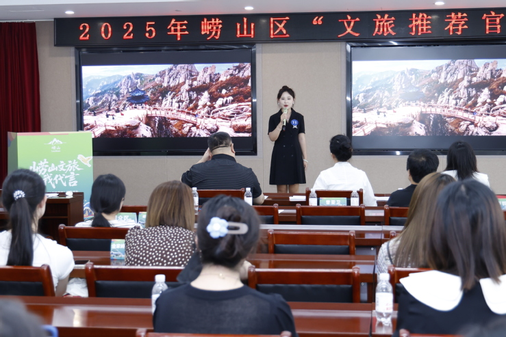 本次活动由崂山区文化和旅游局主办,旨在推介崂山区文旅资源,讲好“崂山故事”,提升品牌知名度与影响力,进一步擦亮崂山城市文化名片。这5名学生都是文旅学院“百村计划”乡村振兴服务项目的成员。在项目中,他们先后走访崂山区几十个村落,开展文旅资源普查、民俗访谈与特色美食调研,积累了大量第一手资料。决赛现场,他们围绕“崂山文旅我代言”主题,将调研成果精心打磨成讲解词,并结合普通话、英语等多语种展示,实现了知识性、趣味性与感染力的完美融合,赢得评委与观众的高度认可。