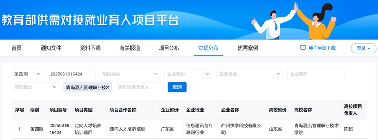 教育部供需对接育人项目由高校学生司(高校毕业生就业服务司)组织实施,旨在落实“稳就业”“保就业”决策部署,深化产教融合校企合作。此次文旅学院与广州快学科技有限公司的合作项目入选,既是对学校践行产教融合理念的肯定,也将进一步提升人才培养质量与就业适配度,为学生高质量就业、行业人才供给提供有力支撑,持续推动学校“互利共赢、优势互补”的产教融合新模式走深走实。