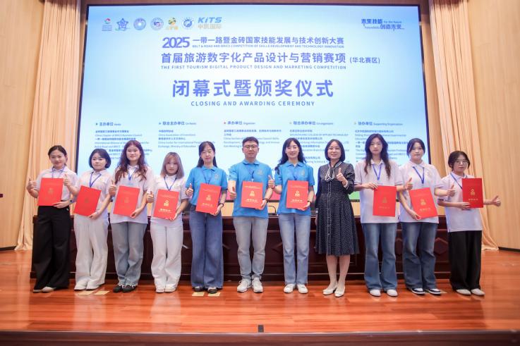本网讯(文旅学院 巩玉玲)9月22日至24日,2025“一带一路”暨金砖国家技能发展与技术创新大赛首届旅游数字化产品设计与营销赛项(华北赛区)顺利举行。sunbet文旅学院刘晓倩、刘晓宇、孙乐雨、王一涵四位同学获得区域赛一等奖,王庆楠、马子杰、李因芝三位同学获得区域赛三等奖,田超、杨安鸽、高雪三位老师获得区域赛教师组二等奖;学生组和教师组均晋级全国总决赛。