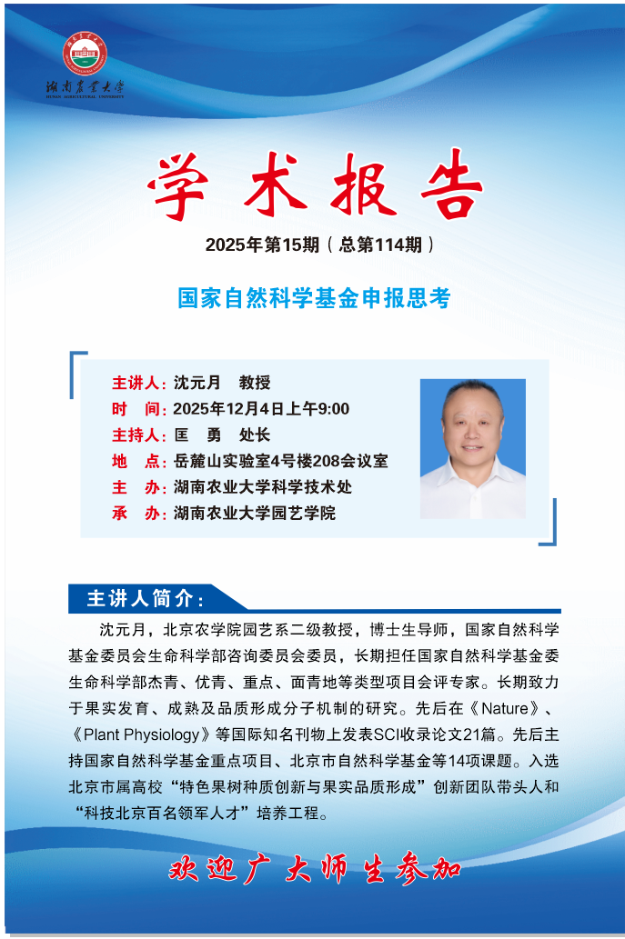 园艺讲坛第114期-名师讲坛:国家自然科学基金申报思考