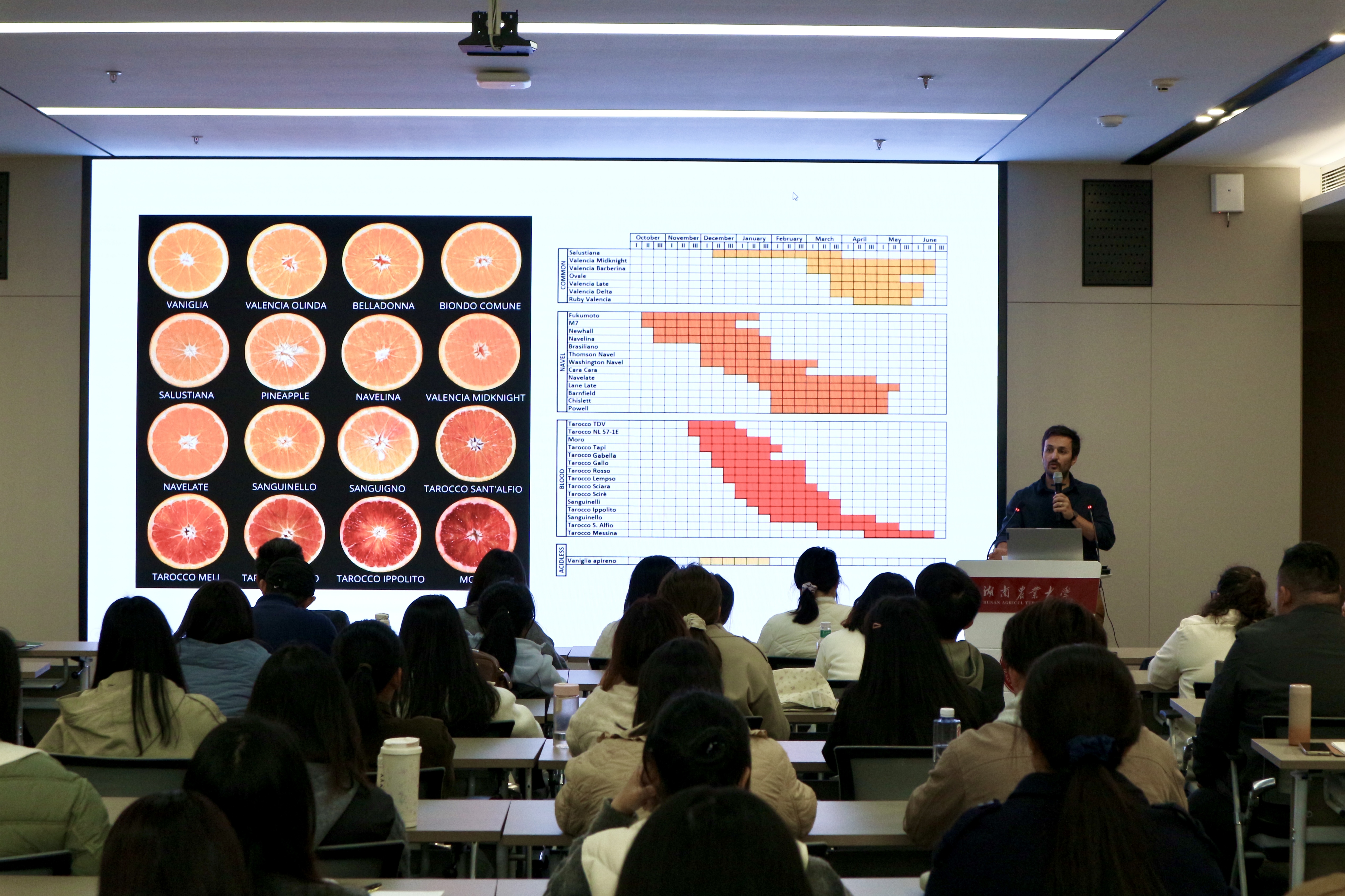 本网讯(sunbet申搏官方网站 孙紫青 李凌志 陈文洁)12月2日上午,意大利卡塔尼亚大学Chiara Catalano、Mario Di Guardo、Alessandra Gentile三位专家受邀做客sunbet申搏园艺讲坛,聚焦果树遗传改良前沿方向,围绕柑橘、葡萄的分子育种与种质资源研究展开深度分享。本次讲坛由马先锋教授主持,130余名师生参加。
