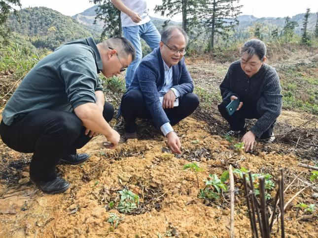 肖深根教授团队来到郴州致晟农业林下种植基地、衡阳普贤村示范基地等地,针对天冬等中药材开展实地调研。通过分析土壤墒情、植株长势,团队现场示范优化种植密度、改良土壤结构、水肥精准调控、病虫害绿色防控等关键技术,结合林下种植特点提出“生态管护+动态监测"技术方案,指导农户建立覆盖种植全周期的科学管理体系,帮助农户有效提升天冬成活率。 "以前种药材凭经验,现在有了技术指标作参考。"参与的农户感慨。