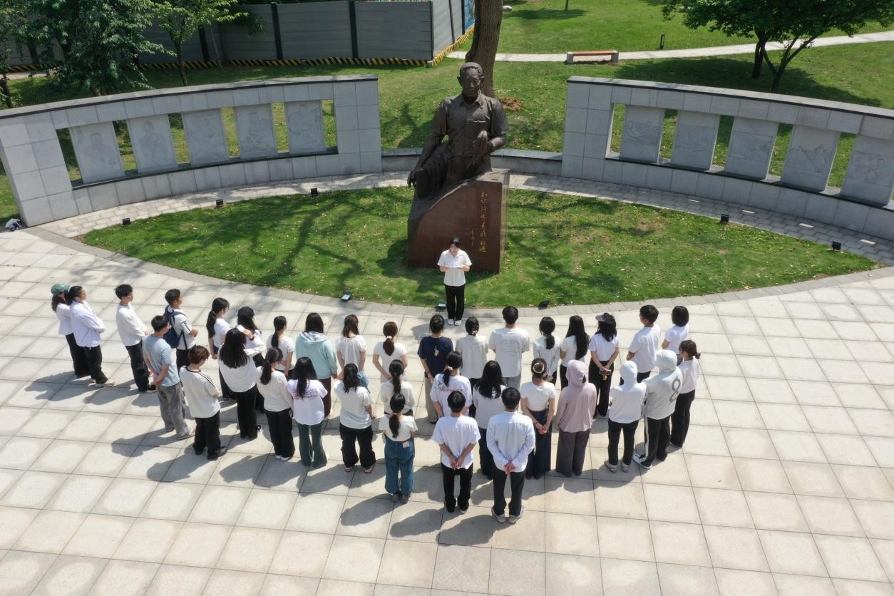 在庄严肃穆的院士雕像前,全体成员通过献花默哀的形式深切缅怀袁隆平院士。研究生会团总支副书记贺佳其以"三个跨越"为主线,系统讲述了袁隆平院士的人生经历:从少年立下"学农济世"的科学理想,在困难时期坚守科研初心;到突破学术权威桎梏,成功培育杂交水稻改写世界粮食格局;再到持续耕耘,毕生践行"禾下乘凉梦"“杂交水稻覆盖全球梦”的崇高理想。现场青年学子通过沉浸式学习,深刻体悟到袁隆平院士"敢为人先、严谨治学、淡泊名利"的精神品格。