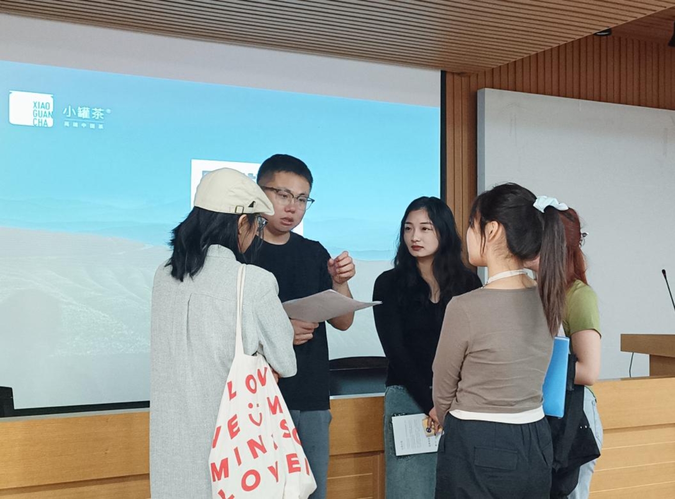在本次招聘会上,张经理从小罐茶发展历程、小罐茶企业文化和2024届校招需求共享三个方面展开介绍。
