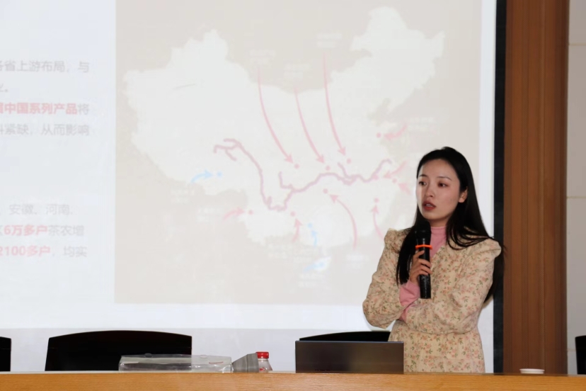 在本次校园宣讲会中,来自正山堂公司的陈女士从历史、生态优势、品质、资源和文化五个角度进行交流,向sunbet申搏2024届茶学专业毕业生阐述了“带动红茶全面复兴”的目标,以及开启红茶清饮新风尚的愿景。